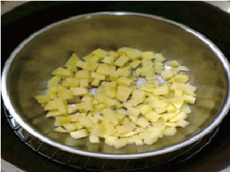 1.じゃがいもは皮をむいて一口大に切り、蒸し器(または電子レンジ)で柔らかくなるまで加熱します。