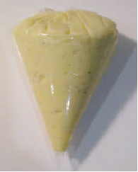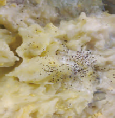 3.加熱したじゃがいもを潰し、ゆで卵の「黄身」、黒胡椒、生クリームを加えてよく混ぜ合わせます。滑らかになったら絞り袋に入れておきます。