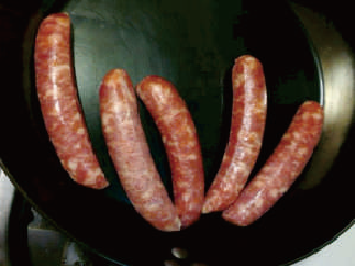 4.フライパンでとびっこソーセージを、中までしっかり火が通るようにこんがりと焼き上げます。