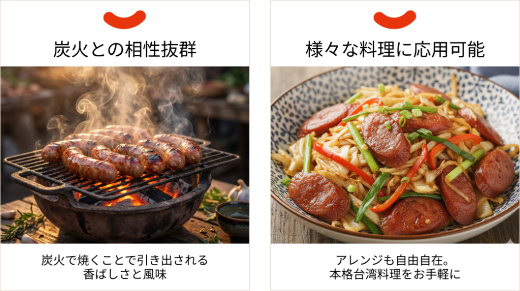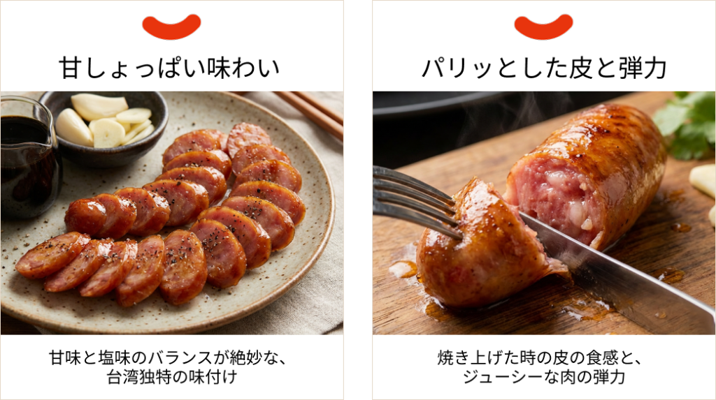 調理はとてもシンプル。フライパンでじっくり焼くだけで、外はパリッと、中は溢れんばかりの肉汁が広がる主役級の一皿が出来上がります。また、スライスして野菜と炒めたり、チャーハンの具材にしたりと、アレンジ次第でいつもの家庭料理に驚きと深みを与えてくれるのも魅力です。忙しい日々の中に、異国の情緒と温もりを。今こそ、本場台湾の香りを日本の食卓に添えて、新しい食体験を家族や大切な人と分かち合ってみませんか?